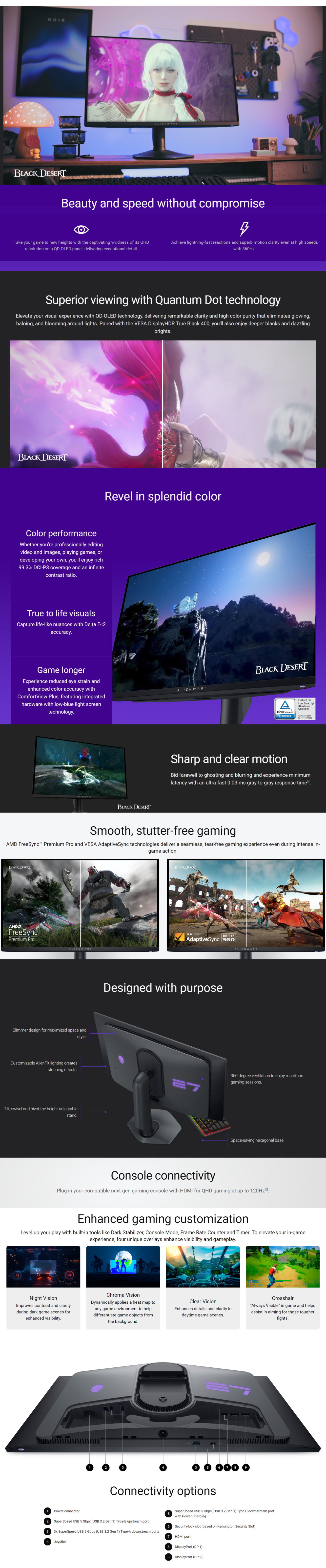 DELL Alienware 27″ AW2725DF QD-OLED Gaming Monitor, 0.03 ms Response Time, 360Hz Refresh Rate, Smooth Stutter-free Gaming, AMD FreeSync Premium Pro + VESA, DP 1.4 / HDMI / USB 3.2 Type-C | AW2725DF