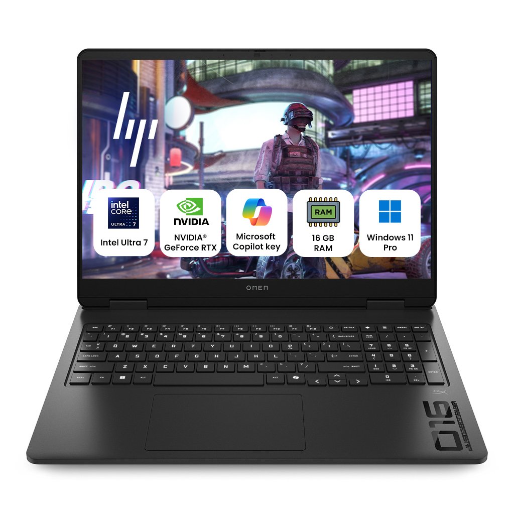 HP Omen 16-AM0361TX Gaming Laptop with 16" FHD Display, Intel Core Ultra 7-255H Processor, 16GB RAM, 1TB SSD, NVIDIA GeForce RTX 5060 8GB, Windows 11 Pro, Microsoft Office Professional Lifetime Activated, Bluetooth, Shadow Black
