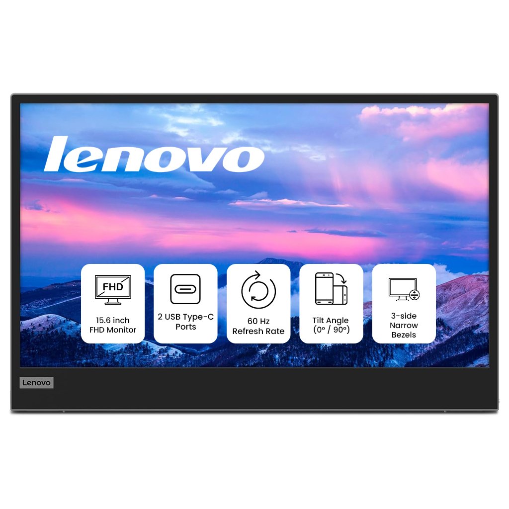 Lenovo L15 Monitor with 15.6″ FHD IPS Display, Ultra-Portable Design, Dual USB-C Connectivity, Eye-Care Technology, Black