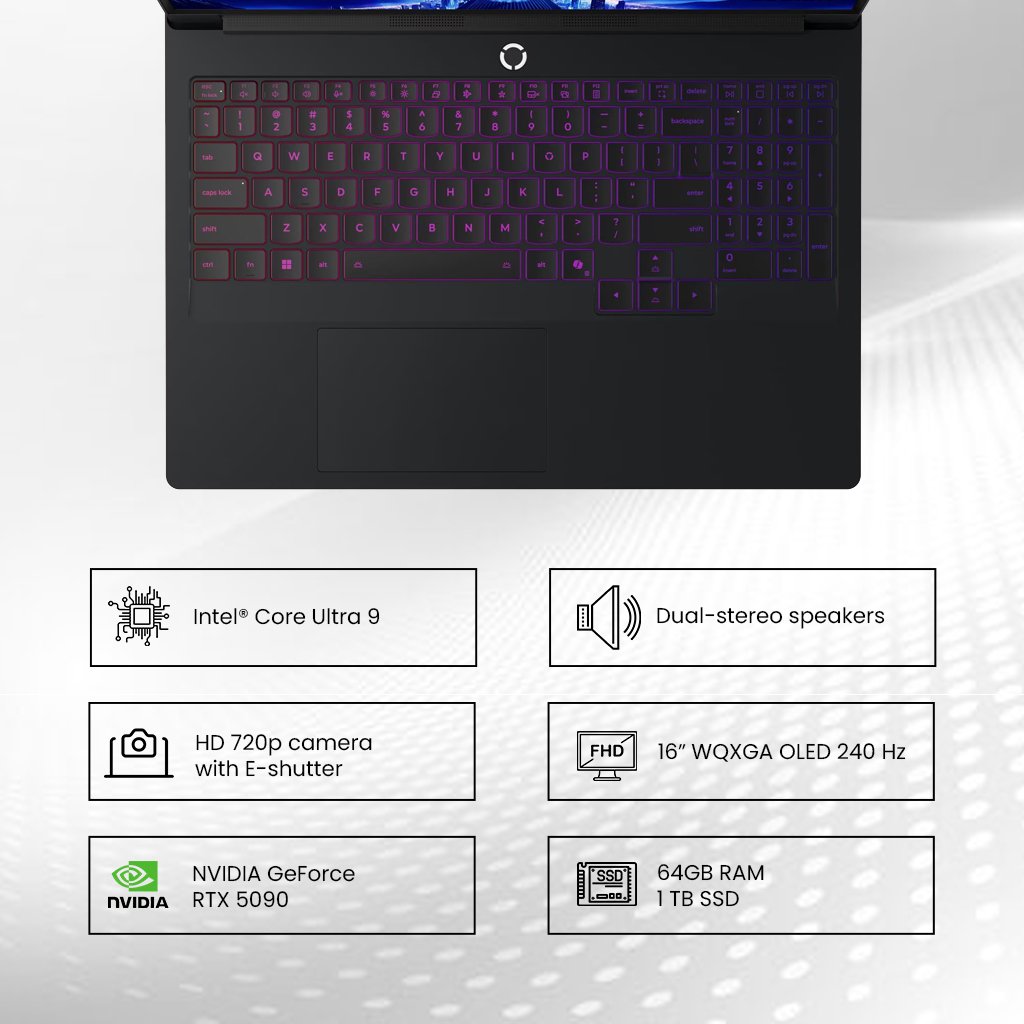 16″ WQXGA Display | Intel Core Ultra 9-275HX Processor | 64GB RAM | 1TB SSD | NVIDIA GeForce RTX 5090 24GB | Windows 11 Pro | Microsoft Office Professional Lifetime | Eclipse Black
